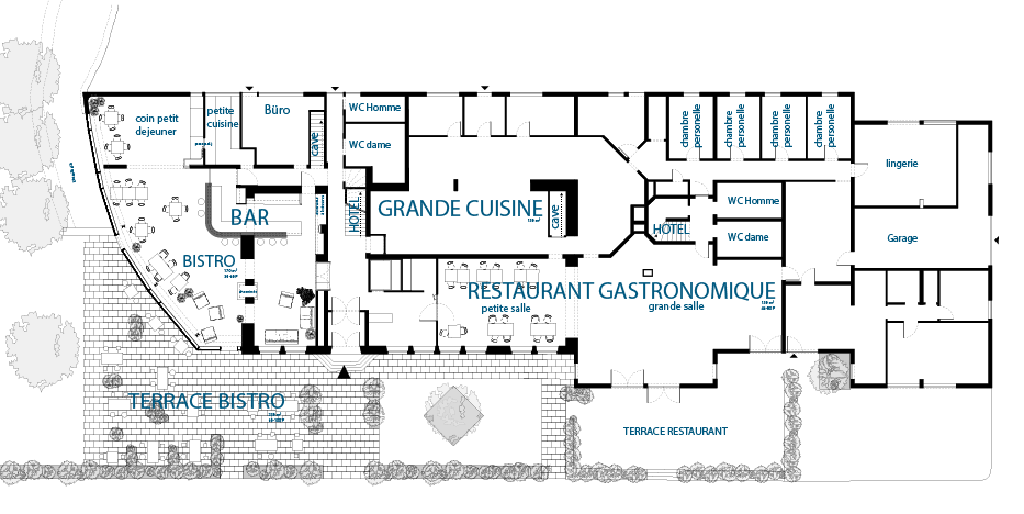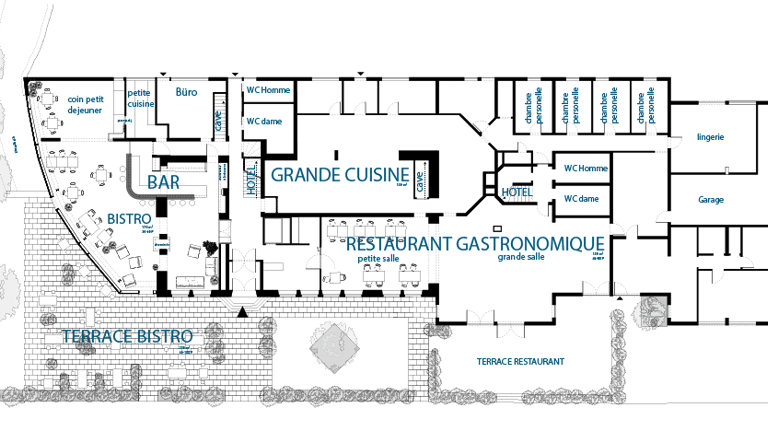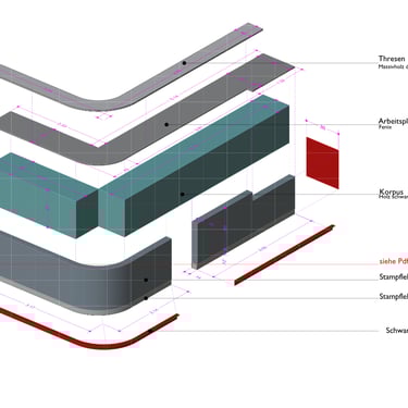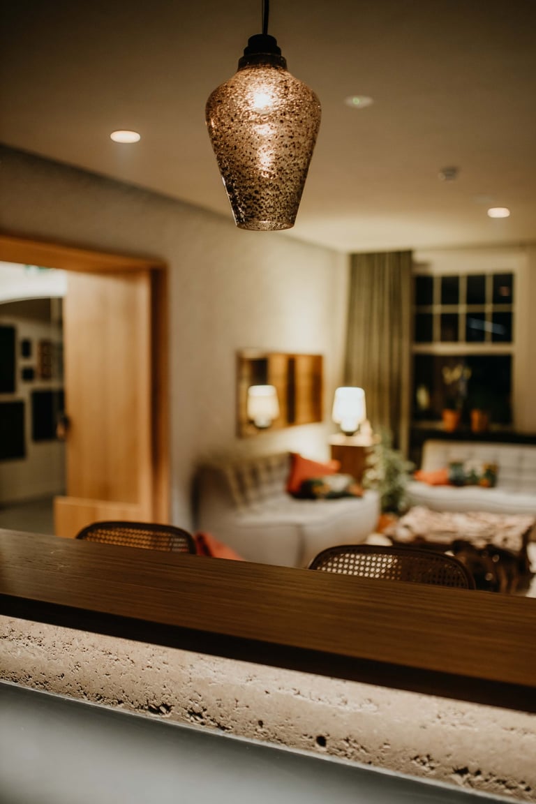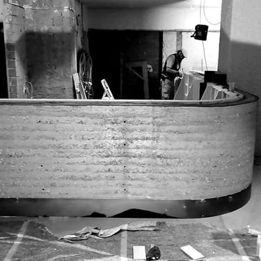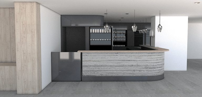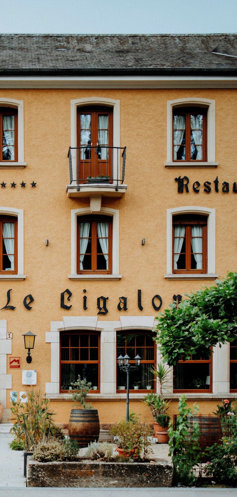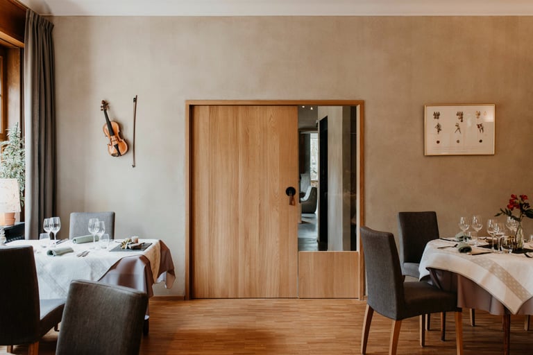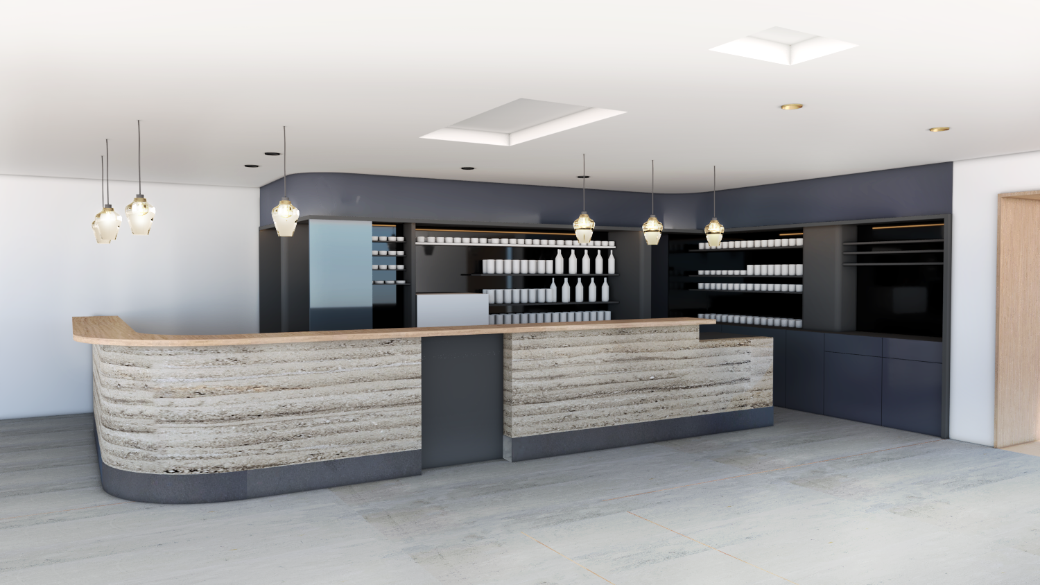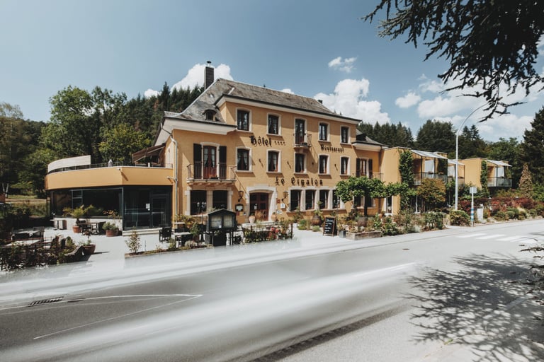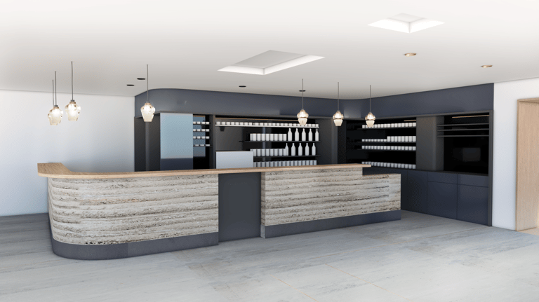 Das Hotel Restaurant Le Cigalon im Müllerthal, Luxemburg, wurde nach schweren Überschwemmungen 2018 umfassend renoviert. Die neue Bar besticht durch eine 15 cm breite Stampflehmmauer und eine formverleimte Eichen-Trinkbrett-Krone. Ein schwarzer Körper aus MDF und Schwarzstahl verleiht dem Raum moderne Eleganz. Sanfte Rundungen ersetzen scharfe Kanten, wodurch eine harmonische Atmosphäre entsteht. Natürliche Materialien wie Holz und Lehm fördern Nachhaltigkeit und ein angenehmes Raumklima. Das Design spiegelt das Engagement für Umweltfreundlichkeit wider und schafft ein einladendes, ästhetisch ansprechendes Ambiente.