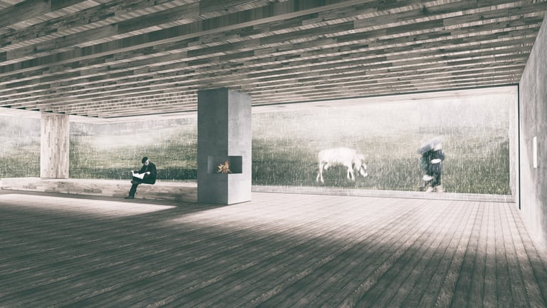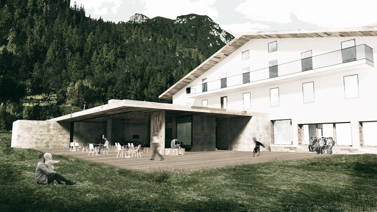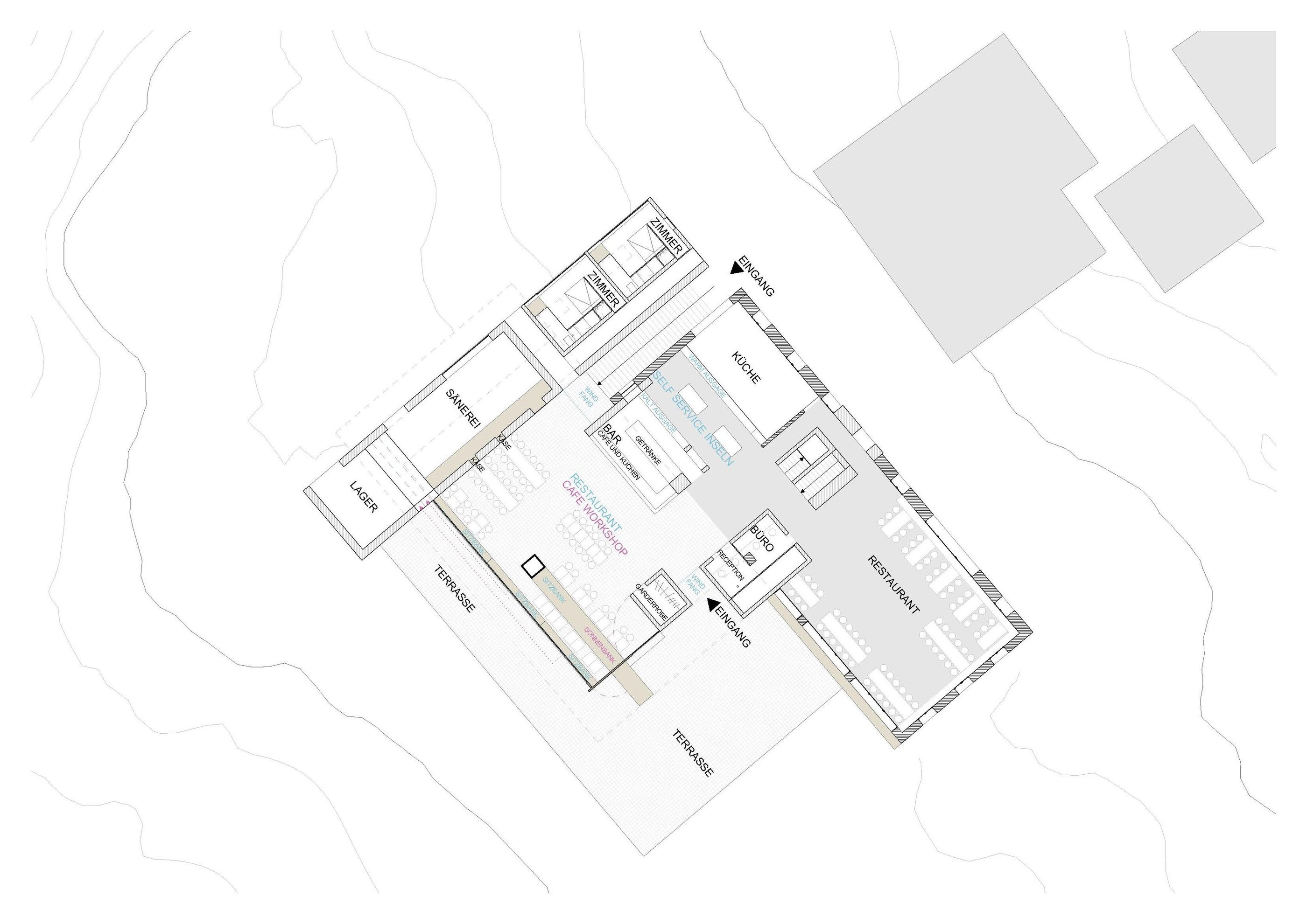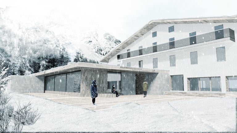 Die Schlicker Alm ist eine Almwirtschaft in den Alpen, die sich an den zunehmenden Tourismus anpassen muss. Im Winter herrscht ein Urlaubsstress, und die Räume sind überfüllt, während im Sommer eher eine gemütliche Atmosphäre vorherrscht. Um diesen Herausforderungen zu begegnen, wurde ein hybrides Konzept entwickelt, das sich an die Jahreszeit anpasst. Es bietet einen funktionalen, schnellen Raum für den Winter und einen gemütlichen, ruhigen Raum für den Sommer. Möbel und Fenster können je nach Bedarf verschoben oder geändert werden, um die Atmosphäre anzupassen. Dieses Konzept unterstützt auch das Konzept der „MUT ZUR FAULHEIT“, indem es den Gästen erlaubt, ihre Umgebung und Atmosphäre zu gemessen.