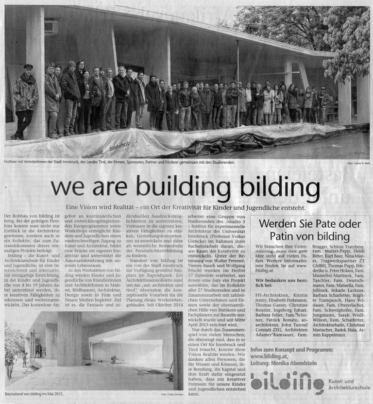 Eine Vision ist zur Realität geworden und im Innsbrucker Rapoldipark ist ein neuer Ort der ästhetischen Bildung und kreativen Förderung für Kinder und Jugendliche entstanden: das bilding. Nun hat diese österreichweit und international einzigartige Einrichtung ihren eigenen Raum erhalten.