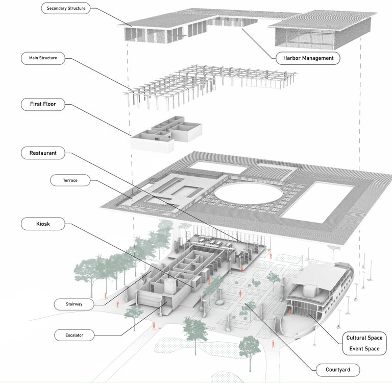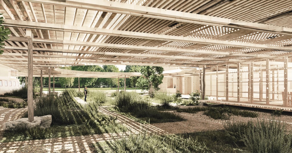 Das Ziel unserer Architektur besteht darin, einen Ort zu schaffen, der den Menschen Unterstützung bietet, um für die Zukunft zu sorgen. Pflegende Architektur geht über Nachhaltigkeit hinaus; sie ist für verschiedene Einheiten konzipiert, die miteinander interagieren. Es handelt sich um das Zusammenspiel unzähliger Elemente und Lebewesen. Darüber hinaus berücksichtigt sie, wie eine Struktur oder ein Raum in Zukunft repariert, wiederhergestellt oder erhalten werden können.